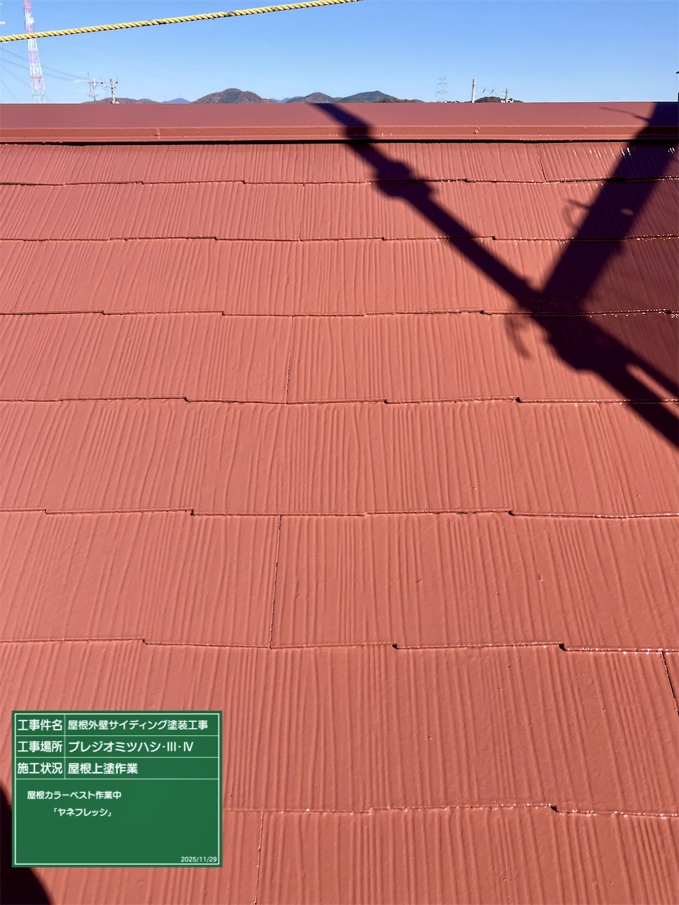 鼻隠し箇所・遮熱上塗作業中