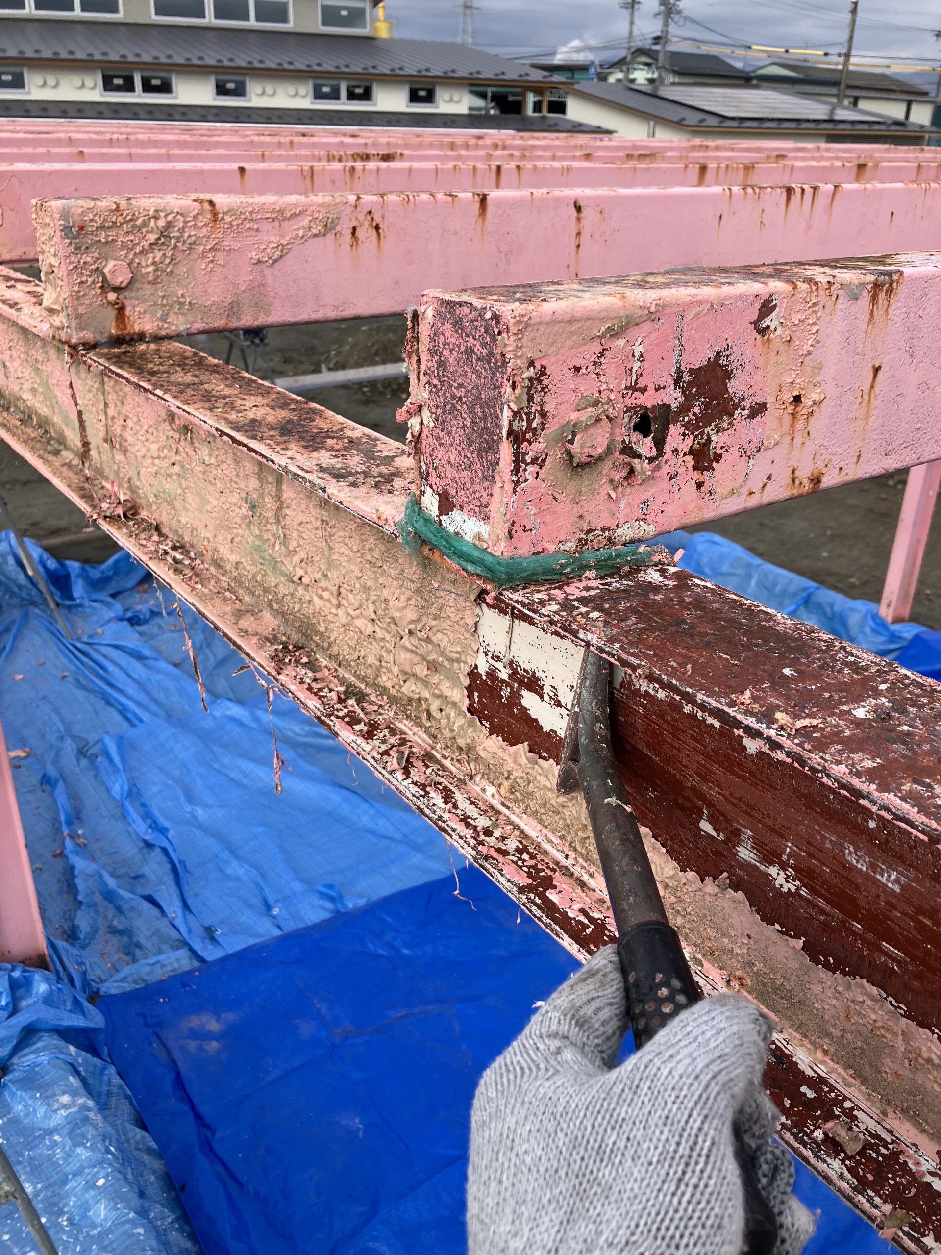 ケレン後錆止め作業