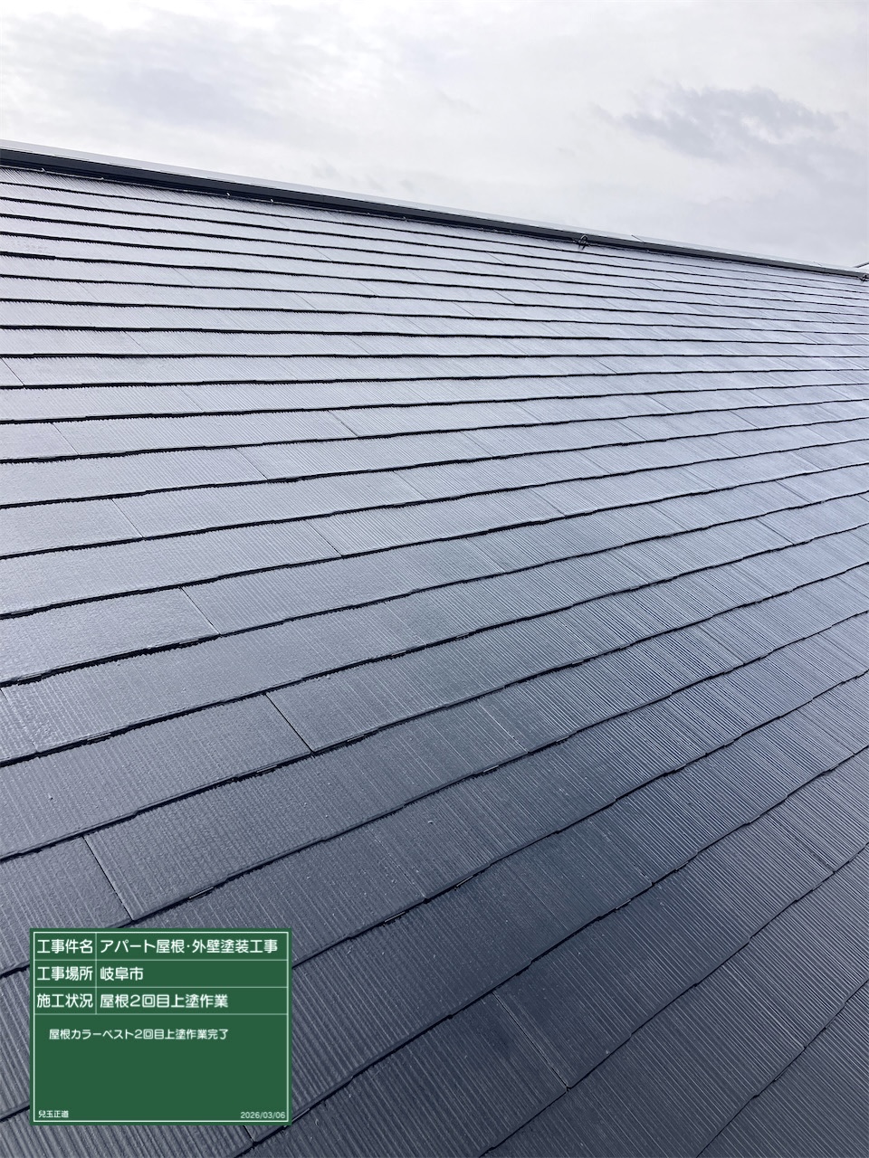屋根ルーフ中塗・上塗作業中