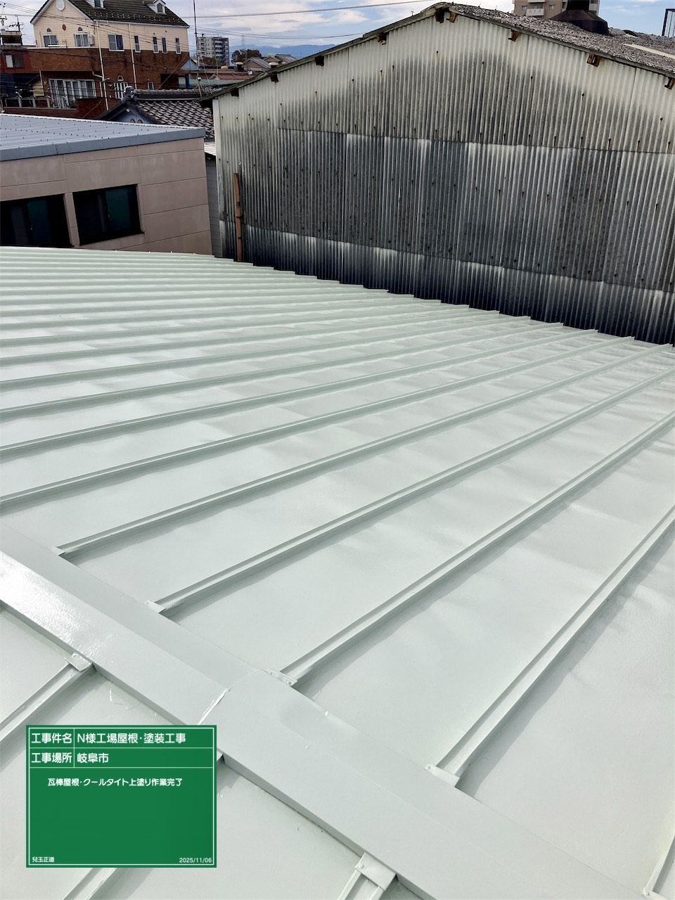 屋根ルーフ中塗・上塗作業中