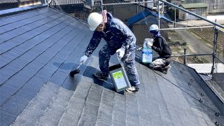 本日は屋根カラーベストフッ素上塗仕上げ作業進めていきました。綺麗に仕上がりました。