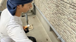 本日午前中はモールや水切り箇所の仕上げ・錆止め作業をおこない午後よりUVクリヤー作業入りました。