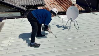 本日は屋根折半遮熱クールタイト中塗作業進めていきました。