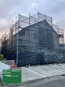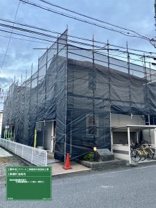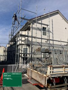 昼過ぎには1号棟の足場設置も完了し14時頃より2号棟の足場設置も進めていきました。明日は引き続きの作業と高圧洗浄作業進めていきます。