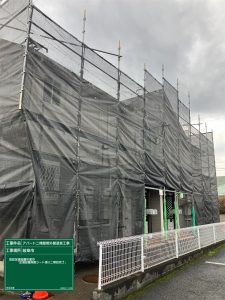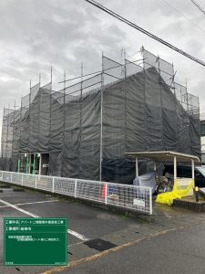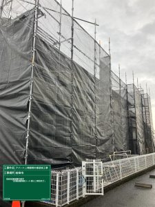 本日で二棟目の足場設置作業が完了致しました。明日は引き続き二棟目の高圧洗浄作業進めていきます。