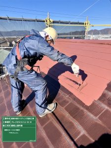 土曜日ですが屋根カラーベスト中塗・上塗完了致しました。