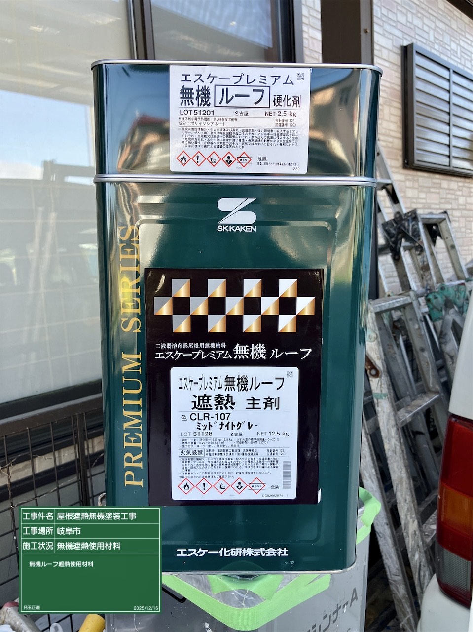 明後日より住宅屋根塗装に使用する「無機遮熱ルーフ」最高峰塗材使用です。