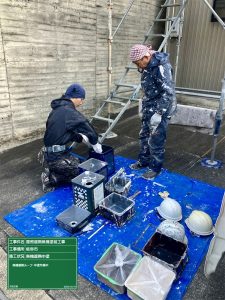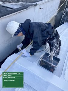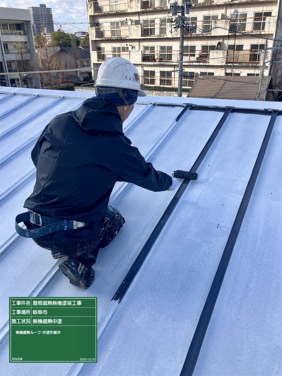 本日は無機遮熱ルーフ中塗作業進めていきました。