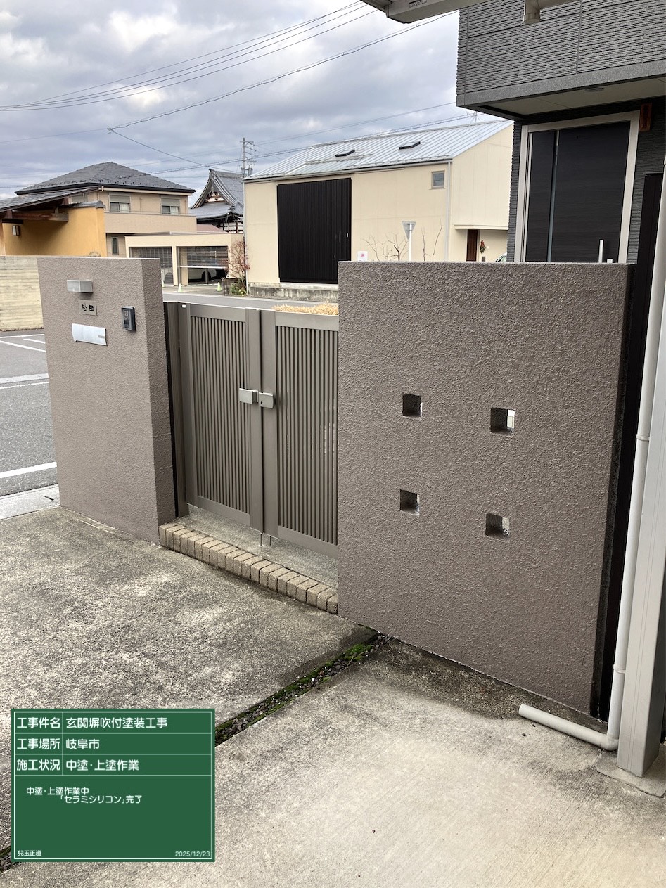 門壁吹付上塗完了