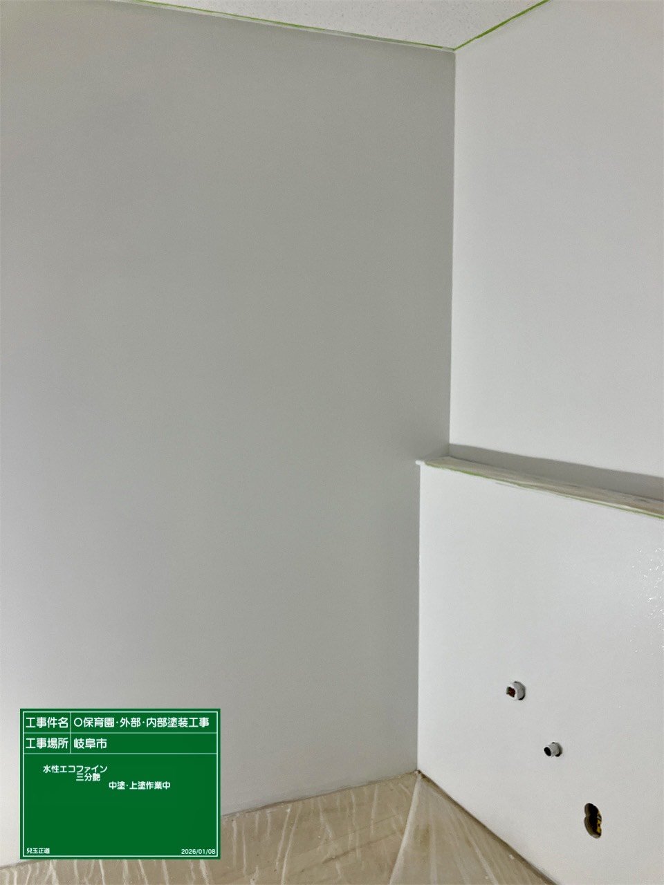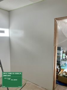 内部壁引き続きの作業にて中塗・上塗作業進めています。