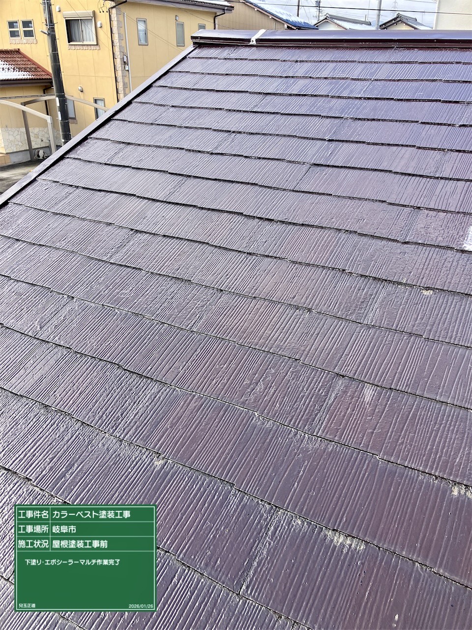 本日下処理及び下塗りシーラー作業完了しました。明日はヤネフレッシシリコン中塗・上塗の工程作業に入ります。