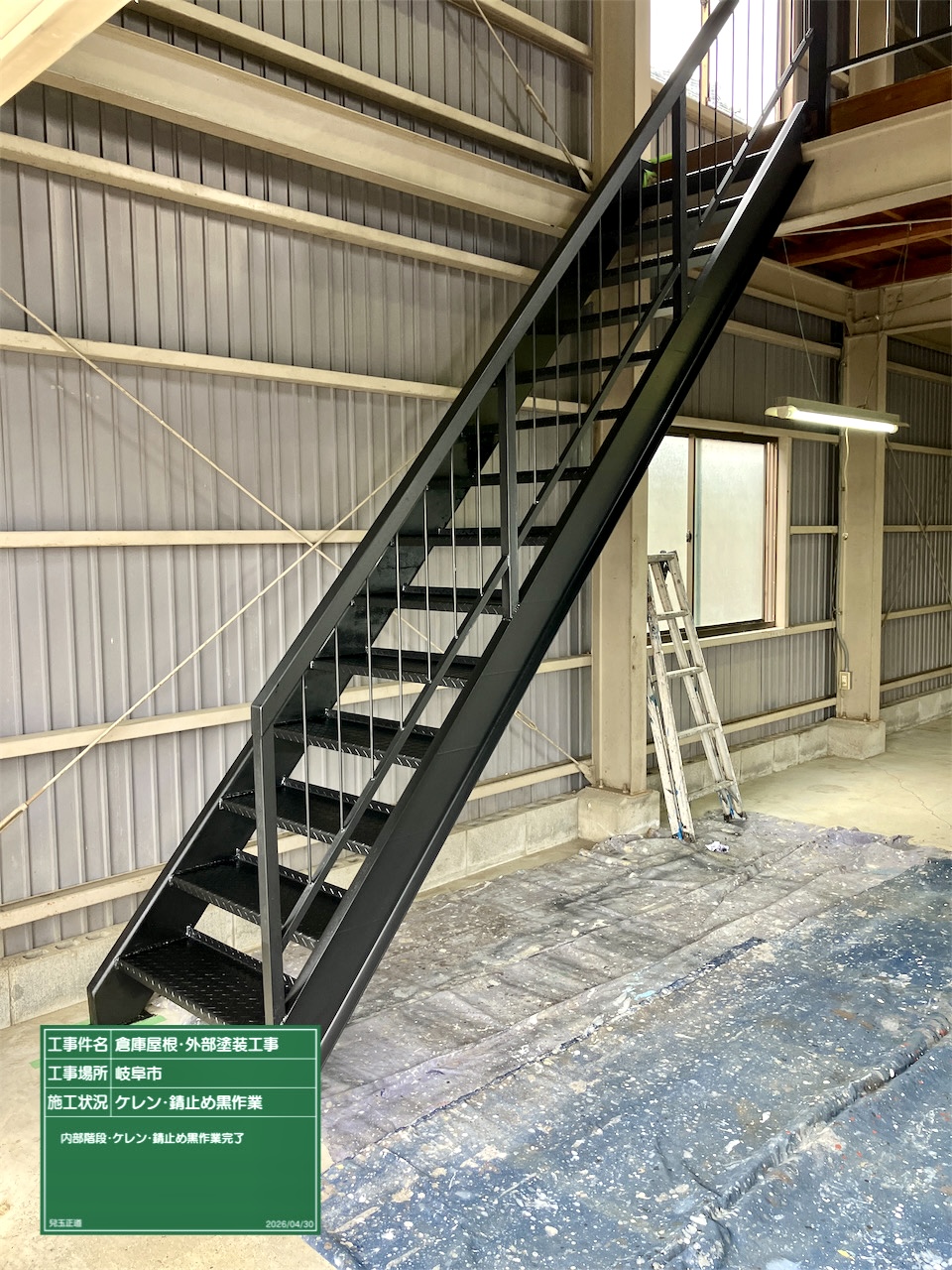 午後より手摺り・階段箇所の錆止め作業進めていきました。新人のY君です。