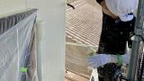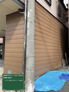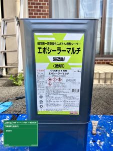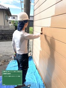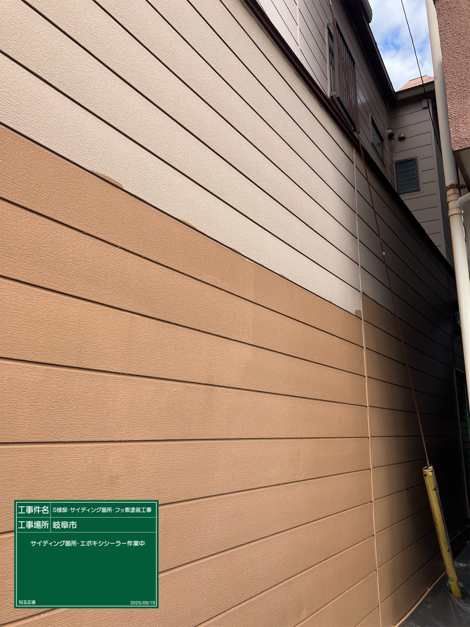 本日は違うお客様から依頼のサイディング箇所のフッ素塗装工事です。下塗りシーラー作業中です。