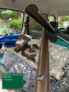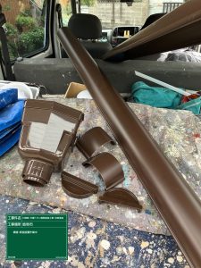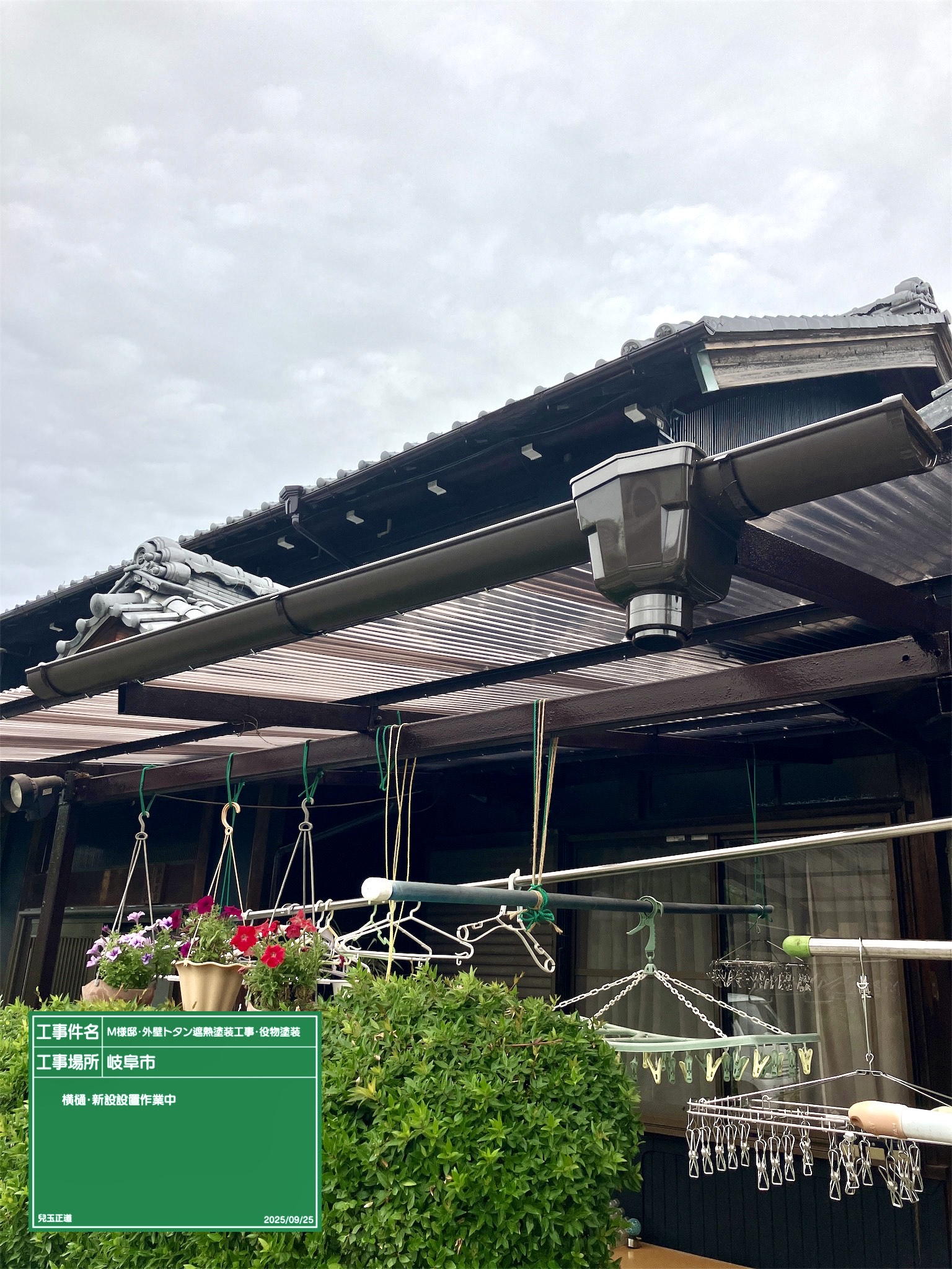 本日は旧樋の撤去新設取替作業です。レベルを出し綺麗に樋交換作業できました。