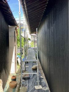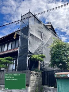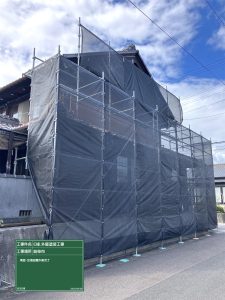 本日よりI様よりフッ素塗装依頼を受け初日足場設置東面・西面入りました。