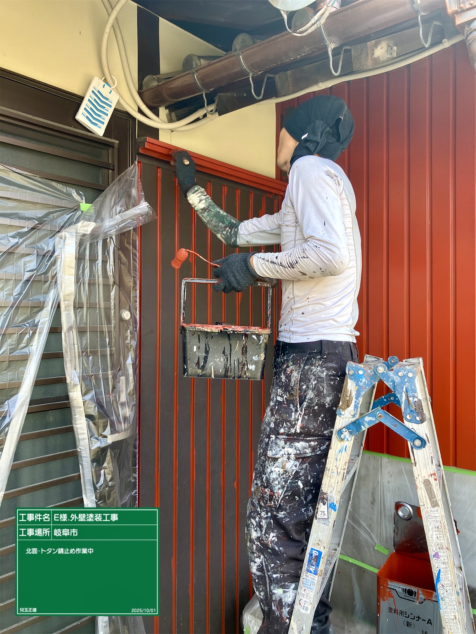 北面一階トタン錆止め作業進めていました。本日は中塗・上塗作業完了させていきます。