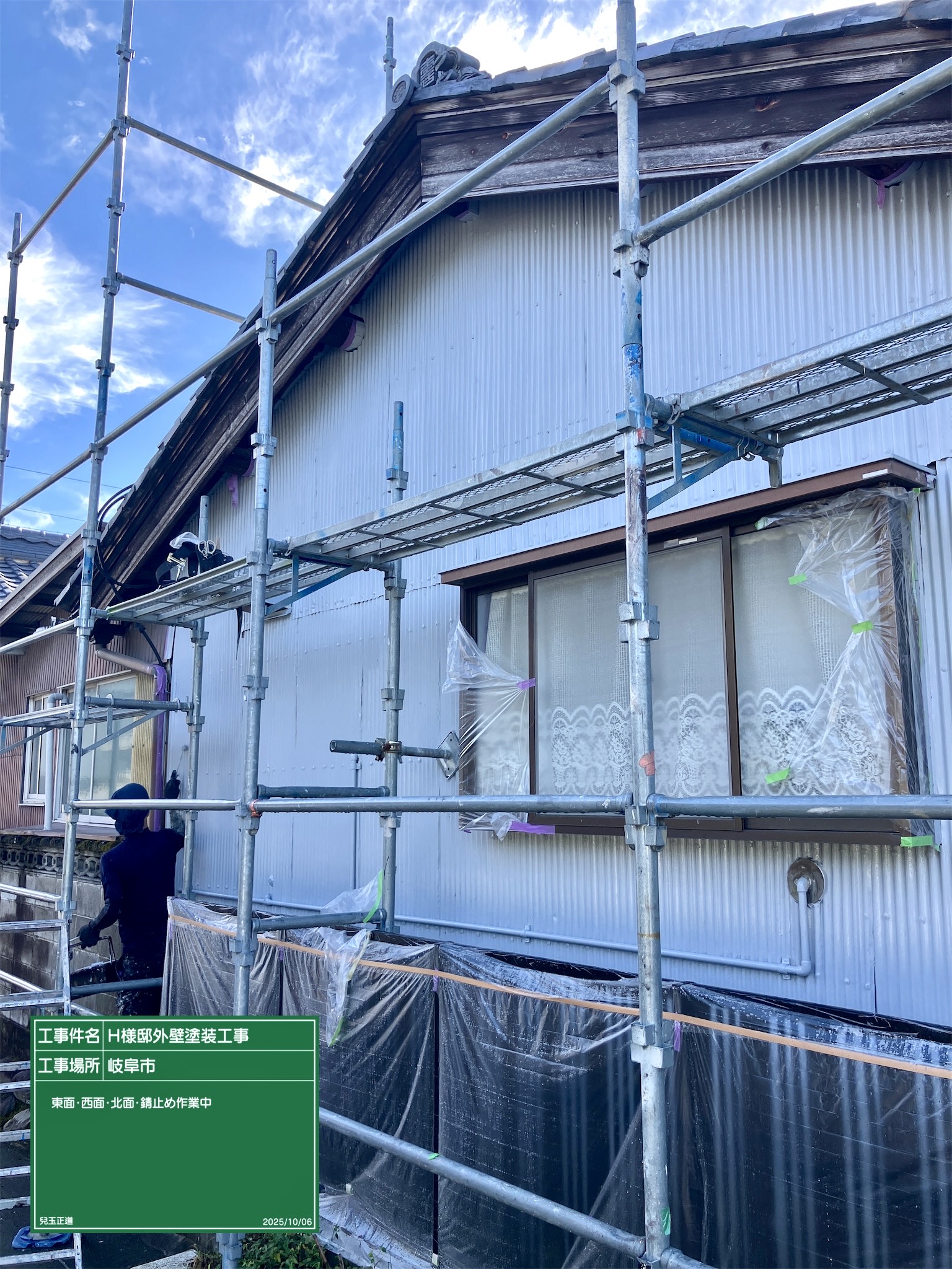 本日は北面一階トタン箇所の上塗作業完了まで進みました。明日は東・西面・完了作業まで進めていきます。