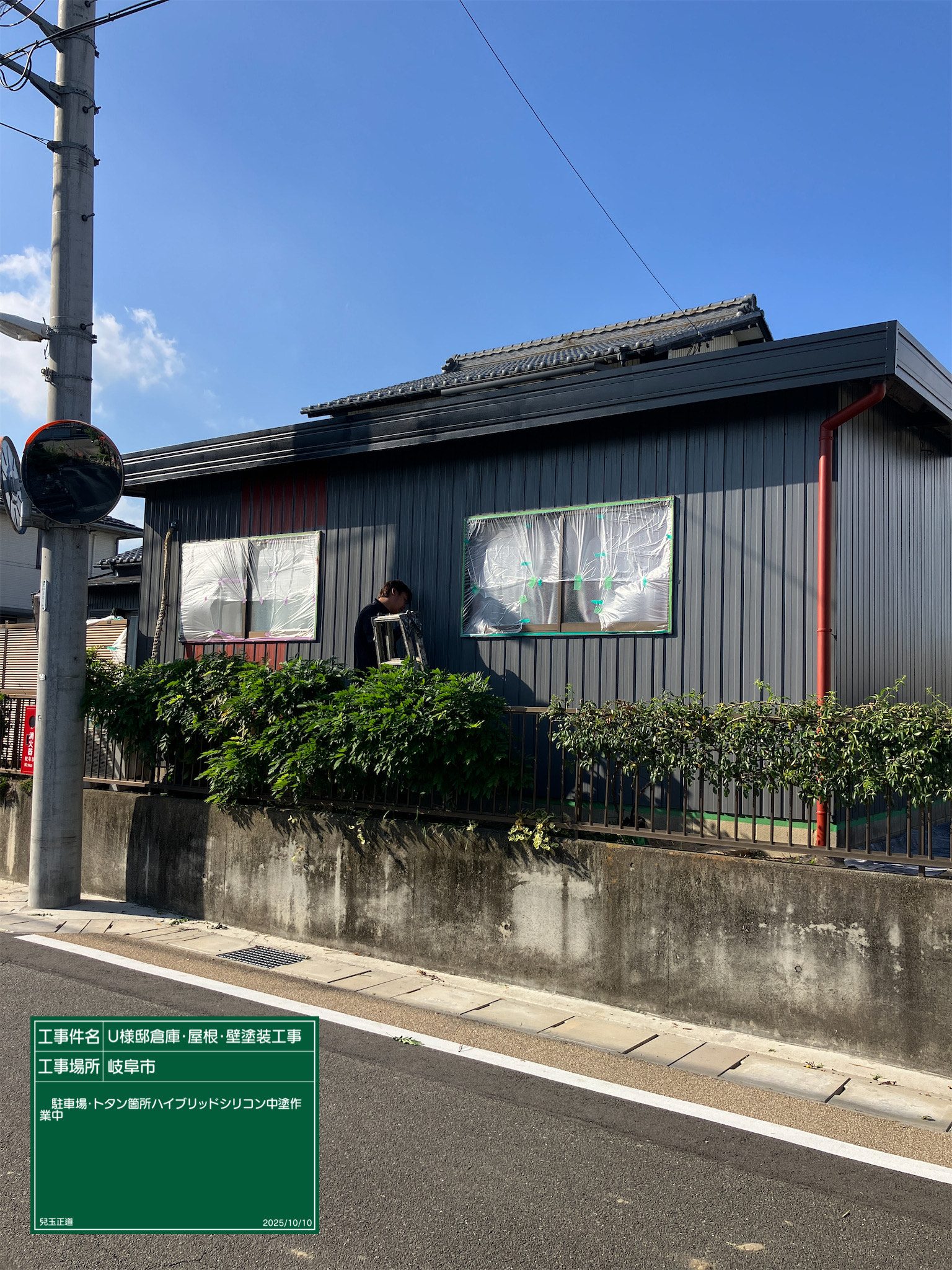 本日午後より壁面のトタン箇所・艶消し中塗作業進めていきました。