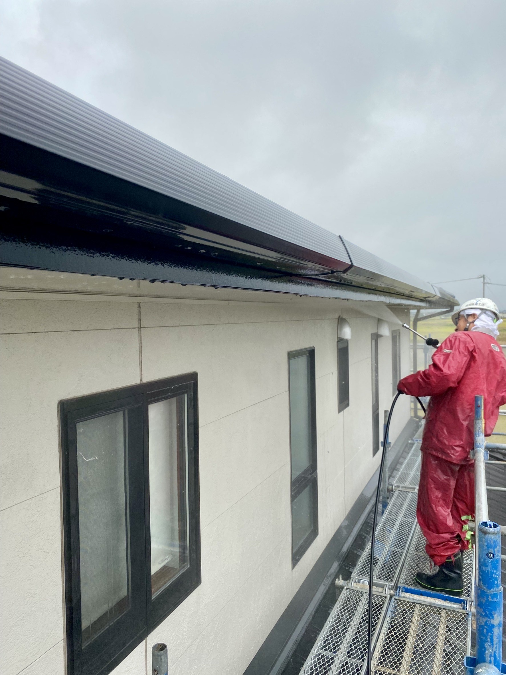 本日より初日高圧洗浄作業入りました。フッ素塗装よろしくお願い致します。