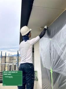 鼻隠し箇所・遮熱上塗作業中