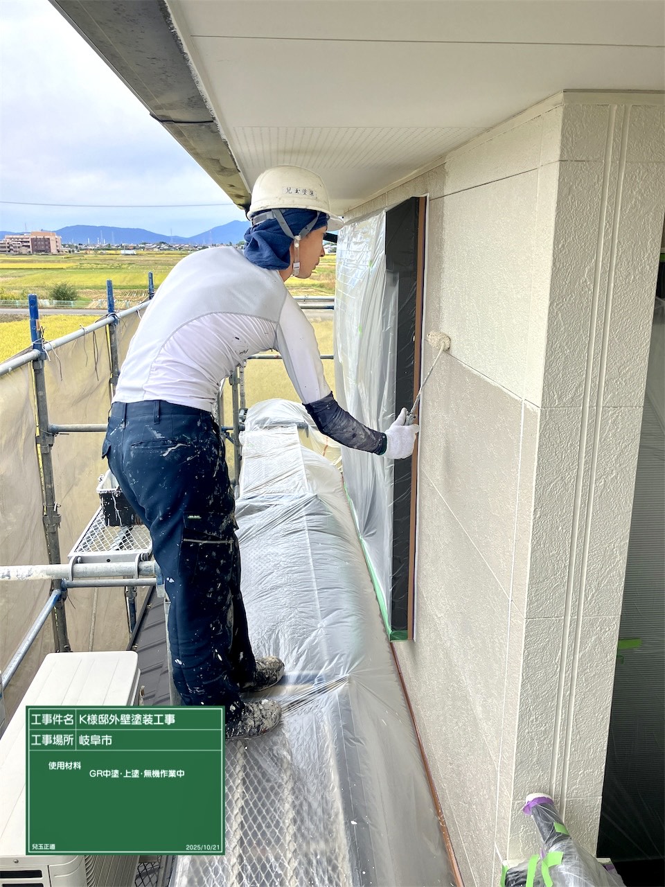 本日は無機塗装の上塗作業を進めていきました。中塗は前日に完了してます。