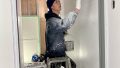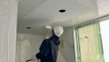 本日より岐阜市O小学校体育館トイレ箇所新設塗装工事入りました。初日は天井パテ処理・パテ2回目作業及び養生作業進めていきました。